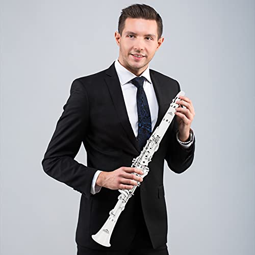 EASTROCK Bb Flat 17 Nickel Keys White Beginner Student Clarinet with 2 Barrels and Cleaning Kit